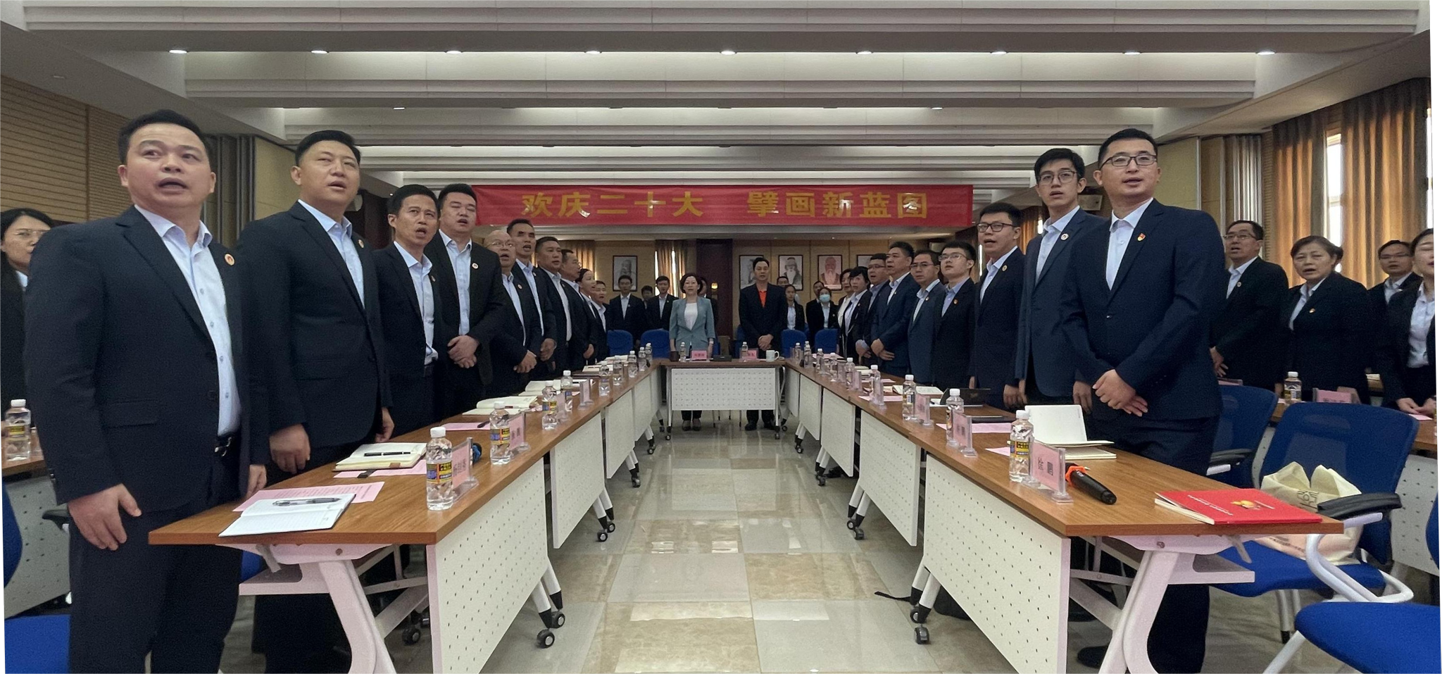 最后,刘景萍董事长要求公司上下对于党的二十大报告,要长期坚持学习、要与工作结合起来学习、要在学习和工作中不断总结,并提出相关要求:一是进一步提高政治站位,清醒认识到党的二十大精神是指导企业、引导企业高质量发展的行动纲领;二是坚持以党建为企业发展的长期抓手,坚持发扬斗争精神,敢于斗争、善于斗争,在工作中充分展现蓝狮娱乐人有担当、能打仗的优秀品质;三是领导干部带头学,在集团内掀起全员学习的热潮;四是在人才引进、项目认定、绩效考核等工作上与党的二十大精神保持一致。